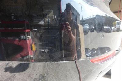 ろに回ってみると、左バンパーに損傷が確認できました。