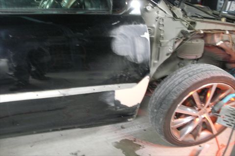修理中のお写真では、そのフロントフェンダの交換作業や、