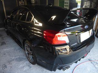 WRXの左リアドア、左クォーターパネル、リアバンパーの修理、塗装を行いました。