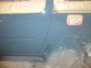 修理箇所の左リアドア、左クォーターパネル部分にご注目を。