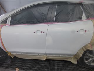 CX-7のフロントドア、リアドアにキズ、ヘコミがありましたので、板金、塗装で修理いたしました。