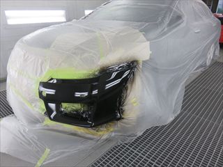 まず、マスキングシートでお車全体を保護してから、作業を開始いたします。