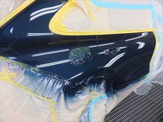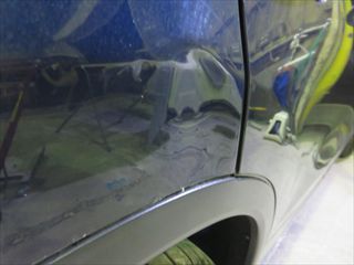 カイエンSハイブリッドのリアドア、クォーターパネルに傷、ヘコミができていたので板金、塗装にて修理いたしました。