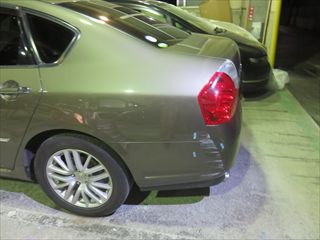日産のフーガ(CBA-Y50):傷の修理方法と費用 左クォーターパネル板金、塗装、リアバンパー修理 作業工賃120,000円/合計金額(税込)129,600円