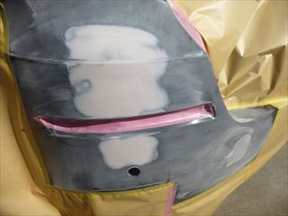 作業中は修理箇所以外のボディ全体をマスキングシートで保護します。
