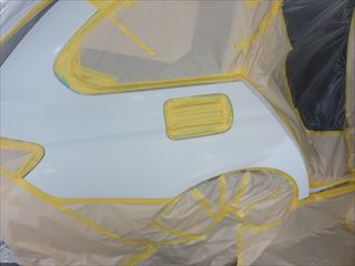 まずは傷があった部分をパテとやすりを交互に使いながら慣らしていきます。 なめらかに修復することができたら、次は塗装作業です。