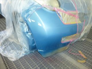 擦り傷の修理を行った後、塗装専用ブースにお車を移動し、
