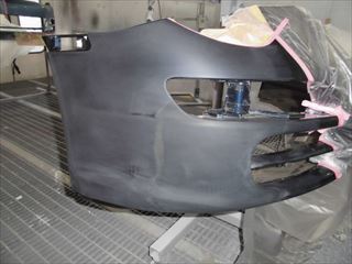 911のフロントバンパーのキズができていたため、脱着・分解、修理・塗装にて対応させていただきました。