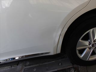 トヨタのハリアー(DBA-ZSU60W):傷の修理方法と費用 左リアドア、左ロックピラー修理、塗装 作業工賃196,364円/合計金額(税込)216,000円